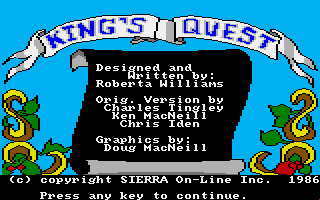 Sir Graham is a brave knight who is sent on a quest to retrieve three treasures that were stolen by deception and stealth: a shield that protects its bearer from invaders, a mirror that foretells the future, and a treasure chest that is forever filled with gold. If Graham takes these treasures back to the royal castle, then the ailing King Edward the Benevolent of Daventry will hand over the crown. During his travels, Graham will meet characters that will either help or hinder him.