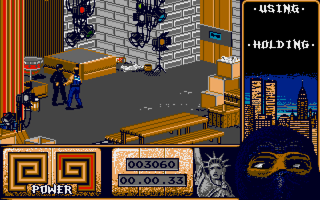 Last Ninja 2: Back with a Vengeance is an action/adventure game where the player, controlling a powerful ninja, must fight his way through opponents while collecting necessary items. The game is split into various levels, each of them depicting a different locale and divided into several screens. The view is isometric and the ninja can move in four different dimensions (he can also walk backwards) and jump.