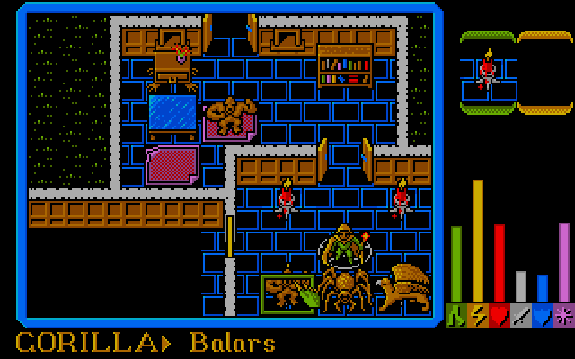 The idea of the game is to escape the level within a certain number of moves (preferably carrying lot of treasure and having killed the evil wizard Torquemada). Along the way you can use wizardry weapons and spells (there are 45 in total, created by combining ingredients) to conjure up mystical creatures like dragons and unicorns, but unfortunately so can Torquemada. Worlds include marshlands, castles and forests.