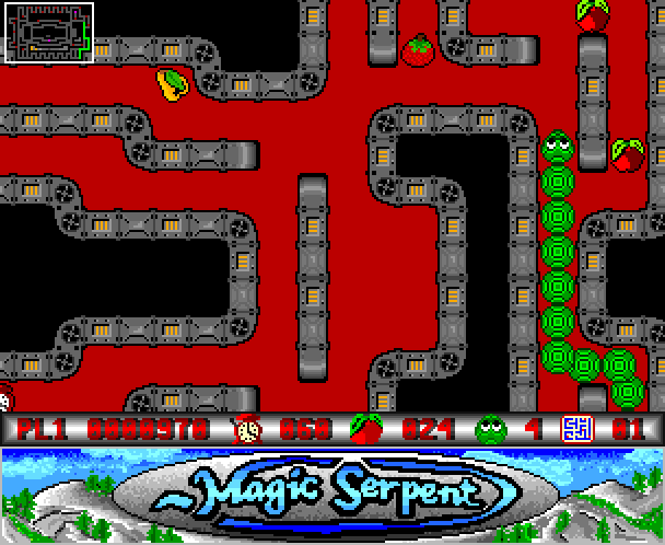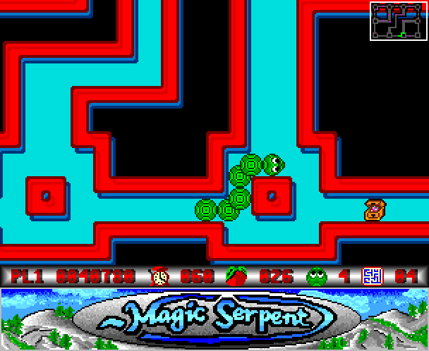 Pity on Software 2000 pushing old idea as a brand new game, however, presentation is nice and a bit of fun. There are a total of 100 labyrinths, which are distinguished by the position of the walls and their design. You have to complete each level within certain time limit and for each one time get's shorter. Snake is quite responsive to joystick input.