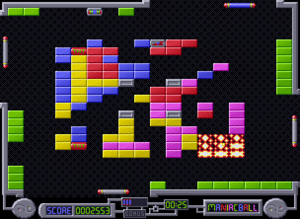 1996 saw the release of ManiacBall on the Amiga systems, a Breakout clone, created and distributed by Diamond Productions as a Shareware.