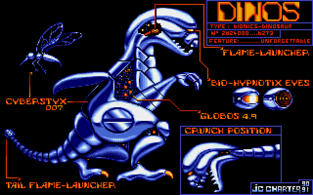 Metal Mutant is an action game, where you control the eponymous machine, sent to the planet Kronox to find and destroy the insane computer AROD 7. Each level is not side-scrolling fluidly, but is divided into separate screens; upon getting to the edge of one screen and fulfilling the given goal, you move to the next one.