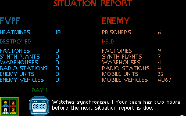 The player initially controls Captain John Stark, the commander of local militia known as Free Villages Police Force (FVPF), who attempt to protect their home from the invasion of armed troops under the command of General Masters. As Stark, the player has to recruit civilians and members of FVPF in order to join forces and prevent Masters from reaching the base located in the south-eastern part of the island.