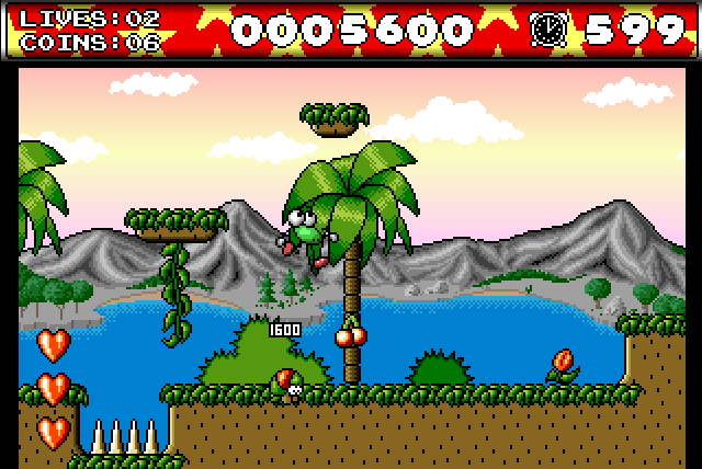 Morton Strikes Back is accessible with addictive gameplay and super smooth parallax scrolling, over 80 levels across 11 different worlds, many difficulty levels'. It is a platform game featuring a Mr Man type character with the legs and rickets. And penguins. As far as platform games go, there's little new or exciting about Morton. You jump on baddies' heads to kill them, collect corns and fruit for points, hearts to regain lost hit points. You start off at the left, head right and occasionally there are secret rooms to be found. The only major difference of course is the penguins.