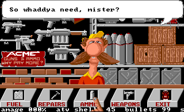 First, you drive through the city with your ATV, destroying enemy vehicles and avoiding mines and gun turrets. There are several buildings you can explore.