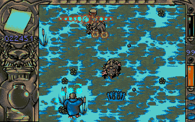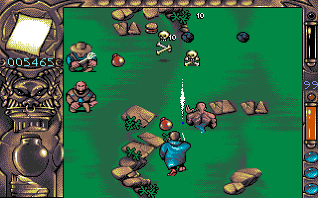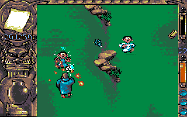 In this vertical scrolling action you should avoid the contact with enemies and their attacks, or eliminate them. You may move on the screen in four directions, collect the items, drink potions and read the scrolls to acquire the certain magical powers. The powers such as firebolts or genie assistant varies as well as your enemies such as monks, doctors, and walking trees, and everything was made with a certain sense of humor.