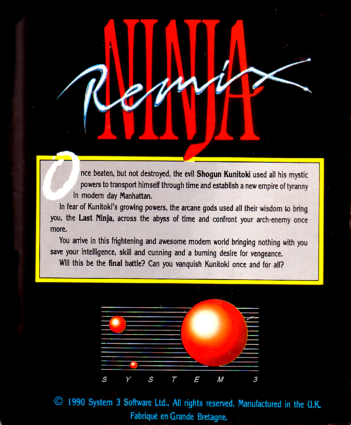 | x_name | Ninja Remix (Amiga, TOSEC, IPF, 1990, System 3, 3020) |