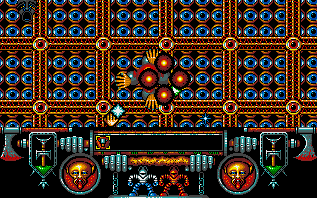 The bulk of the game is side-scrolling platform hack 'n' slash action, with mines to avoid on the route. You can collect a number of spells, and select them using the function keys. Your physical and mental energy are measured separately throughout the game, and must both be kept high.