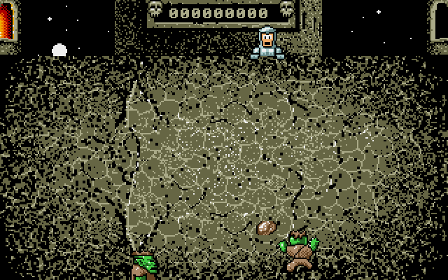 Randomly throughout the game a chief Ork will appear. They ascend slower than their companion Orks and can only be killed by dropping a rock on their head. If a chief makes it to the top then it's game over. Between levels there is a time limited bonus round where the player must sweep defeated Ork bodies into the moat.