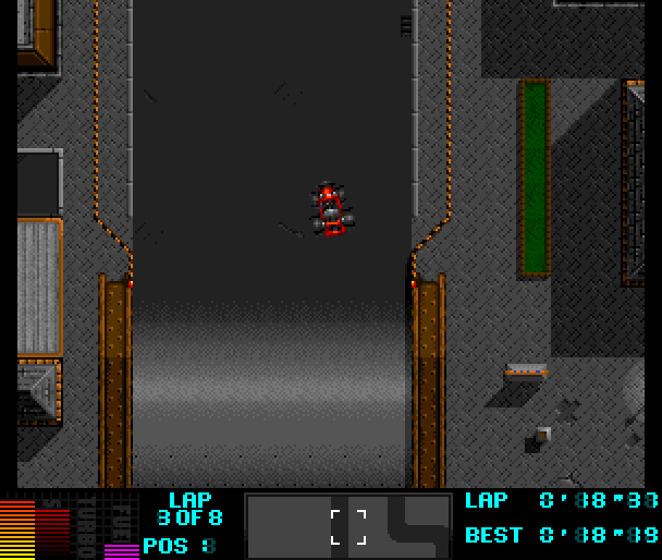 You have four different cars to control in Overdrive, ranging from a GP to a Super sports car. All have their own strengths and weaknesses, as you would expect. The controls are very responsive, and it goes without saying that it's incredibly playable. What makes it so tough is the speed. Everything just whips along at such a rate that it's often hard to anticipate corners, and you end up careering all over the shop. Overdrive lets you link up two machines via the null modem cable.