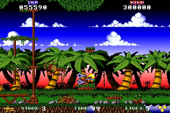 In Paramax, the player is trapped in a virtual world. It consists of several sub-worlds, representing the levels of the game, which have to be crossed before winning the game. This is a traditional, side-scrolling platformer in which the player walks from left to right while avoiding enemies (respectively killing them with the laser gun) and jumping over gaps. Additionally there is the need to hurry because each level has a time limit. There are various extras to collect on the way, e.g. shoes for a higher jump, smart bombs to get rid of multiple enemies at once, extra time or extra lives.