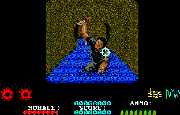 The film Platoon featured a squad of five soldiers on their mission for the US Army in Vietnam. In this action game based around the film, you take control of these five guys in turn, with the chance to switch between them as they each take one of the 3 hits that would kill them.
