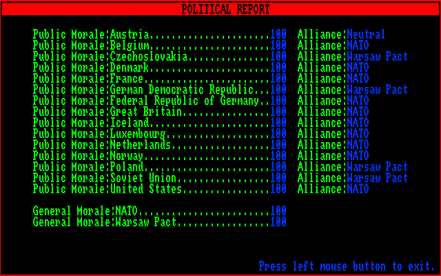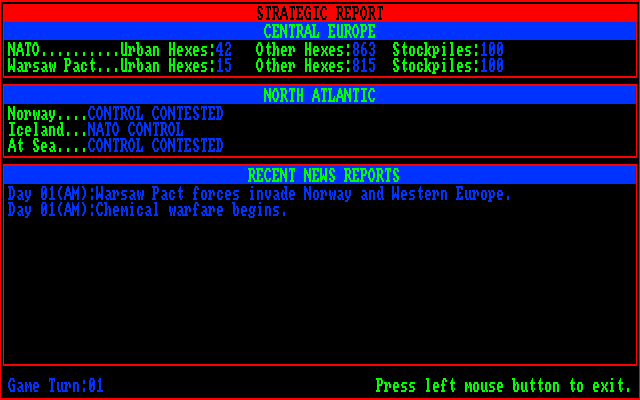 Red Lightning is an operational level wargame of a potential conflict in central Europe between NATO and the Warsaw Pact. It's a game of a hypothetical World War III in the early 1990's. As the Soviet player, the mission is to sweep aside NATO forces and capture the Ruhr. As the NATO commander, the mission is to stop the Russion invasion.