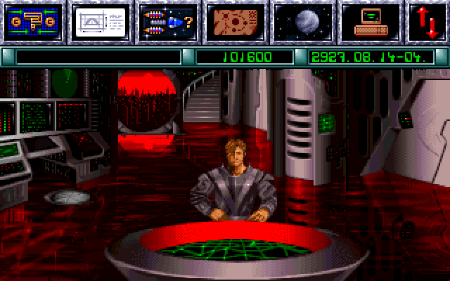In the 27th century, centuries of peace have allowed great scientific progress in the development of the first interstellar warp drive. Two research ships, designated Explorer-1 and Explorer-2, are outfitted with experimental drives and sent to find new planets for colonization. Only Explorer-2 returns back to Earth. Refitted as a colony vessel, Explorer-2 is once again ready to embark when the peace is disrupted. A planet-wide rebellion stages a coup and overthrows the government. The Explorer-2, crewed by a loyalist space crew, barely escapes and leaves the solar system. Years later, the Explorer-2 arrives damaged at it's destination and a colony is set up, naming it New Earth. After many generations, the colony is self-sufficient enough to develop a mission: Explore nearby space, research new technologies, harvest resources, develop a space fleet and eventually... reconquer and reunify with the Earth. Reunion is a strategy game where players must manage the resources and development of a colony. From a central command area, players select from among different menus to control different aspects of the colony. Many of these menus also need the appropriate personnel in charge (commanders), whose skills and price tag vary. Typical menus include: The research screen where specific areas are selected, the production/buy menu which turns resources into goods, the colony building menu where construction can be scheduled and the colony's facilities managed, the galactic map where new planets are chosen for a closer look, and eventually colonization. Players can also consult with their commanders or go to "space local", the nearby bar for all the gossip. In order to produce new material, the player has six different minerals to mine and discover on various planets in the solar system.