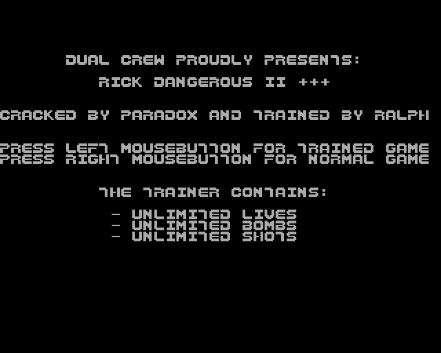 | x_name | Rick Dangerous 2 (Amiga, TOSEC, ADF, 1990, MicroStyle, cr PDX, t +3 Voodoo) |