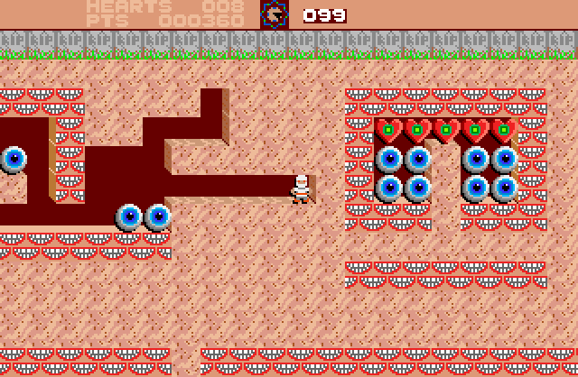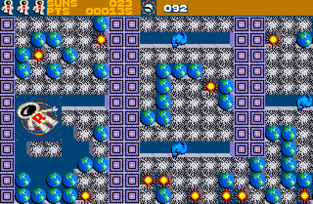 This is a rocks'n'diamonds style game. Play in six different worlds (as a explorer, cook, doctor, etc.) of increasing difficulty, and grab the coins/apples/hearts while avoiding the boulders. And there are enemies to make your life (even more) difficult.