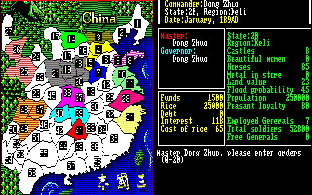 Everything in the game is controlled using numeric commands and enter. As with almost every strategy game by KOEI, you have a lot of different options at your disposal. Everyone who loves good strategy games should try this gem. This is the game that started it all. The game supports multiplayer up to 8 players.