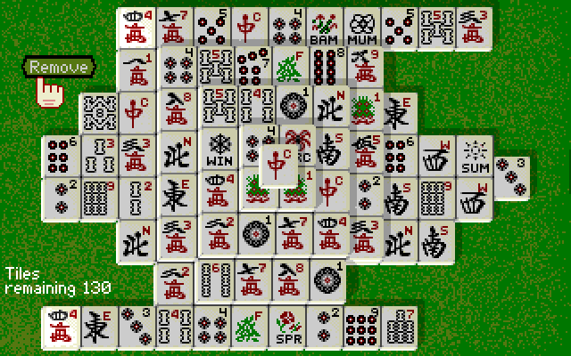 The gameplay involves 144 tiles, each depicting different images, which have to be removed by matching them into pairs. The tiles are arranged in a gridded pattern, which is higher near the centre. A tile can only be removed if it has no tile next to it on at least one side.