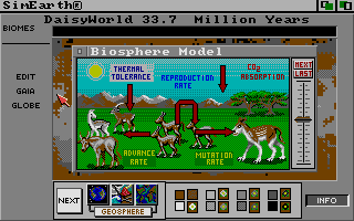 The main threats you face include pollution, disease, famine, war and global warming. The controls available to you include the chance to move mountains and continents, creating different levels of species, and unleash tidal waves and earthquakes so as to reshape your planet. All of these things take from your limited energy, which must be replenished.