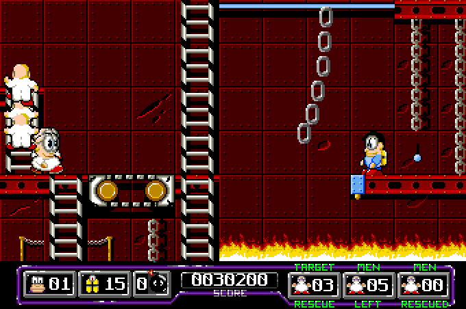 There are several types of scenarios that Kevin Codner (you) are faced with throughout the game. Of course the puzzles get progressively more difficult, involving things like patching up cracked pipes to stop a lethal jet of steam from cooking the distressed passengers. You can blast away obstacles and stack crates in creative manners. For instance, you can have them fall onto each other to form a bridge across a gap or to provide shielding from fire. This is usually done by hoisting them onto conveyor belts using a crane.