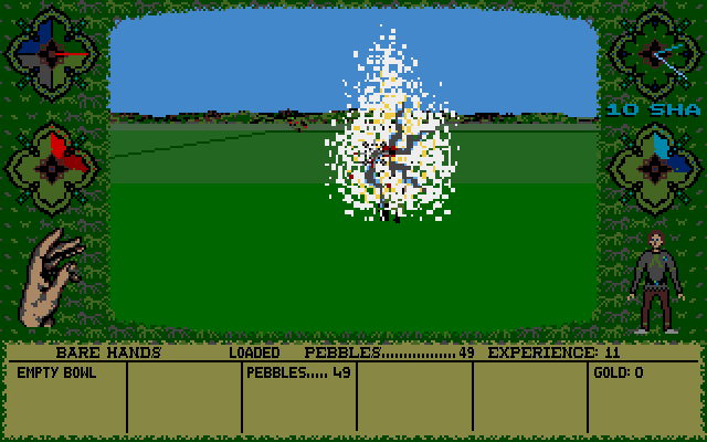 Normally this type of deep and involved adventure game is just my cup of tea, especially if it is in a 3-D world vein. Sleeping Gods Lie though is an odd game. The puzzles are in there just waiting to be found and the game has considerable depth but to its detriment there is a heck of a lot of wandering around vast, barren terrain as well. The slow moving pace put me off initially but once I got down to some serious mapping it became quite a compelling adventure romp. The accompanying sound effects are surprisingly poor but the title screen music has a certain charm. Sprite expansion is well implemented but I found the character animation and movement occasionally a bit messy to look at. In short, a little long-winded but enjoyable all the same.