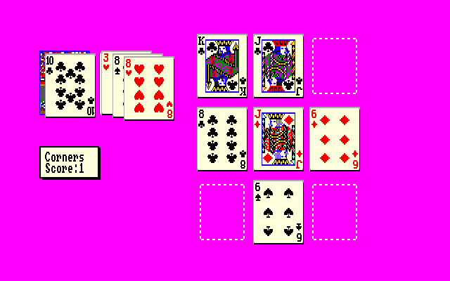 This was an early commercial instance of Card Solitaire. There are 8 different solitaire games, including Klondike, Calculation, and Three Shuffles and a Draw. You can also play "Aunt Anne's Tour" where you play all 8 in row, trying for the highest combined score, and 3 children's games. In addition, there are 10 different choices for deck art.