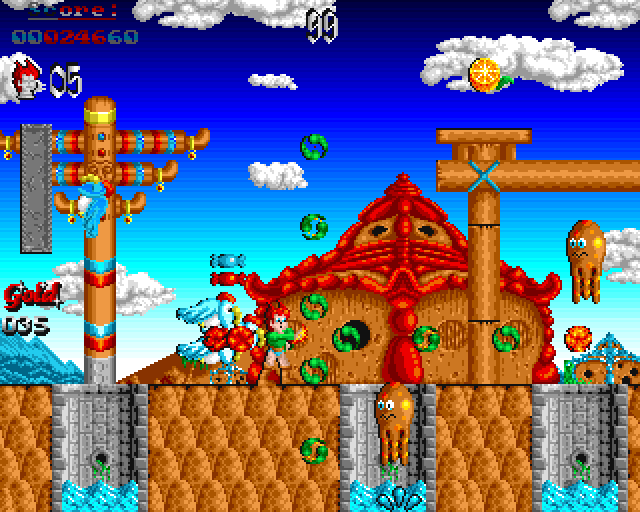 The evil demon Taar-Ka has occupied the lovely kingdom of Tan Tao, which is why Son Shu-Shi is now allowed to act as a savior in the emergency. Technically very well balanced game, very colourful with beautiful background. The sound effects are clear and crisp and music is everywhere.