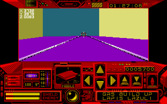 A 3D strategy / action game featuring scaling and rotating polygon graphics. You're the sole voyager happening upon an abandoned space station that's ready to explode from the pressure of dangerous vapors building up inside. For each sector, you must locate the build-up area, then drill to release the pressure. Features 18 different areas to explore, each with its own unique laws of physics and logic, and a number of secret rooms and hidden levels to discover.