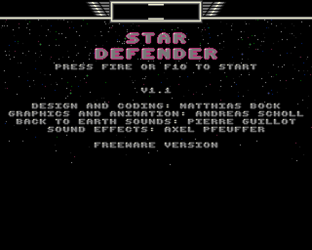 Star Defender is an arcade game like Defender and Stargate. It offers a large number of moving shapes, fast accelerated scrolling and digi sounds. The object of the game is to protect humanoids on various number of moons from alien attack waves.