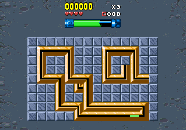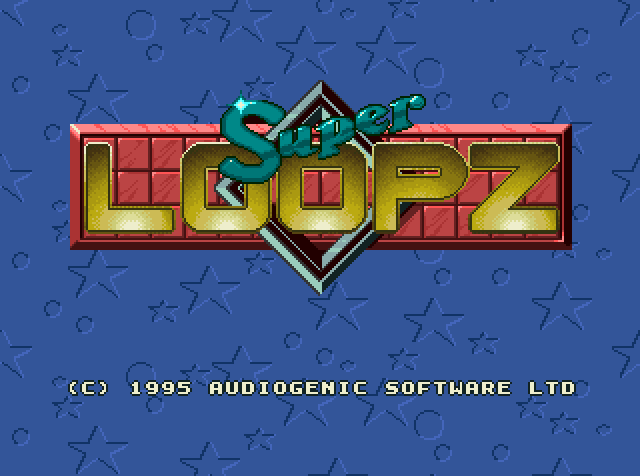 Super Loopz is a revamped version of Loopz. Feature enhanced graphics and new musics, but the same gameplay: sort of Tetris encounter Pipe Dream. Tubes of random shapes drop on to a board, and by rotating and placing them you have to make shapes that join up in loops. Once you have placed a piece you can't remove it, except by using a special items which destroy every part of an incomplete loop it touches; every tenth loop takes you to a new level.