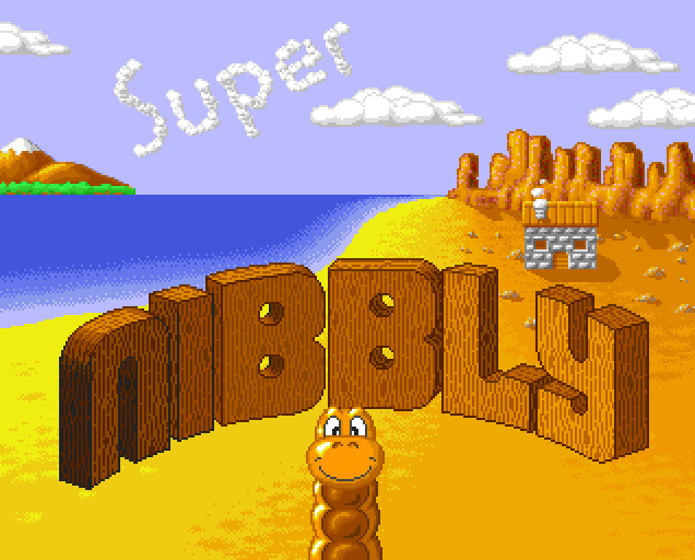 Super Nibbly is a decent and very little known Amiga game. The game is basically the same as classics Snake and Nibbles: you control a snake who grows bigger every time he eats a piece of food in his path. You have to maneuver the snake so that he can keep growing without running into a part of his own body - when that happens, it's game over.