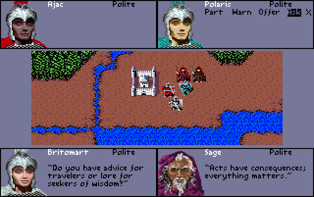 Three years in the making, Swords of Twilight is a gorgeously illustrated fantasy roleplaying adventure. The three members of your party can be played independently by up to three humans using a unique multi-player interface (which is the game's strongest and weakest link) or the computer can control both your companions if you'd rather quest alone. Quirky, non-standard key usage (with no mouse control) is irksome and hampers player maneuverability. The story and characters are lavish and intriguing: with eight parallel worlds to search through for the Swords of Twilight you'll be busy for weeks.