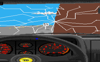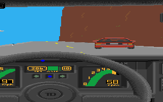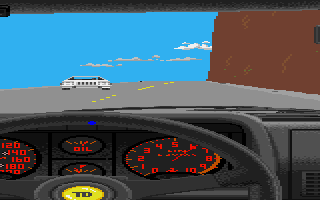 In the game itself, the graphics were excellent for the time – realistic car dashboard etc. Okay, so the scaling of the other cars was dodgy but you didn't notice those things at the time. In these days, a 1/2 meg A500 being able to produce this was pretty good.