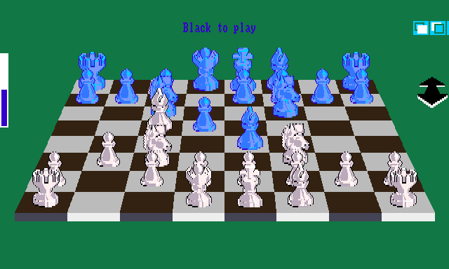 This chess simulation can be played in 2D or 3D, from multiple viewing angles and a wide choice of display colors. Pieces can also be designed using Deluxe Paint, and imported.