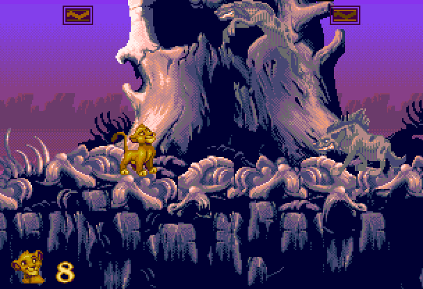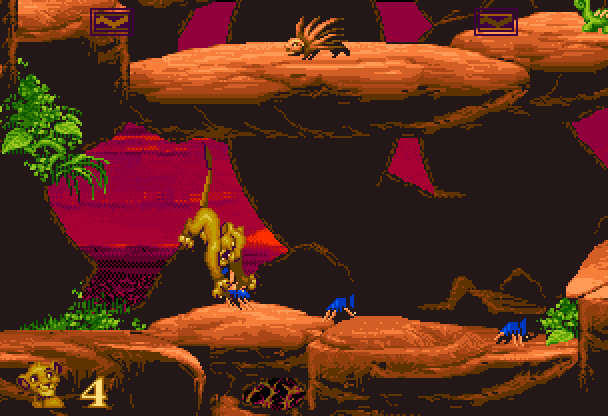 As an adult lion, you can still roar and jump, but now you fight enemies by slashing at them with your claws (if you're skillful enough, you can also grab them and toss them off the screen).
