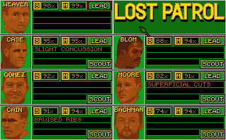 In Lost Patrol, you and your squad are on their way back from R&R in Saigon to your operations base when Viet Cong guerillas force your helicopter to crash land in the Central Highlands of Vietnam. It's now your responsibility to lead the remaining survivors to the nearest U.S. base, evading or facing an elusive and dangerous enemy on his own grounds.