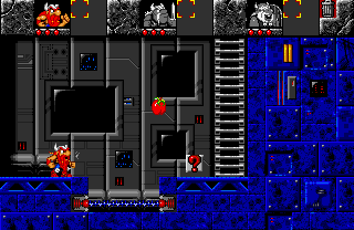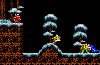 The Lost Vikings is a side-scrolling platform puzzle game with a twist. Instead of one character who can jump, run, shoot, collect items, flip switches and so on, there are three different characters, each with his own skills. Eric the Swift can jump, run and bash through walls with his tough helmet. Olaf the Stout has a shield which can block attacks, function as an air glider or as a step to stand on. Baleog the Fierce can shoot things with his arrows (including switches) or kill things with his sword. The player has to use the three Vikings as a team if he wants to get past the increasingly difficult levels and puzzles.
