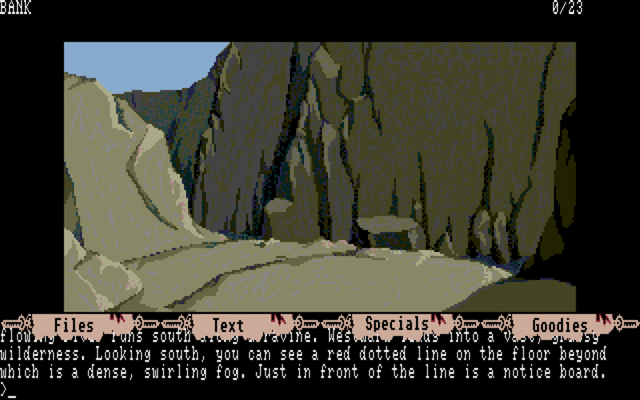 The aim of this interactive fiction with graphics is to escape from the land of Kerovnia, where strange occurrences are routine. The Roobikyoub dwarves have been banished from the kingdom, which is not good as they produce high-quality whisky. King Erik is not popular for this decision, as some feel that ale brewers and mineral water bottlers have influenced him. Honest John the trader and Kronos the Magician play a key role in your journey, each offering sub-quests to attempt.