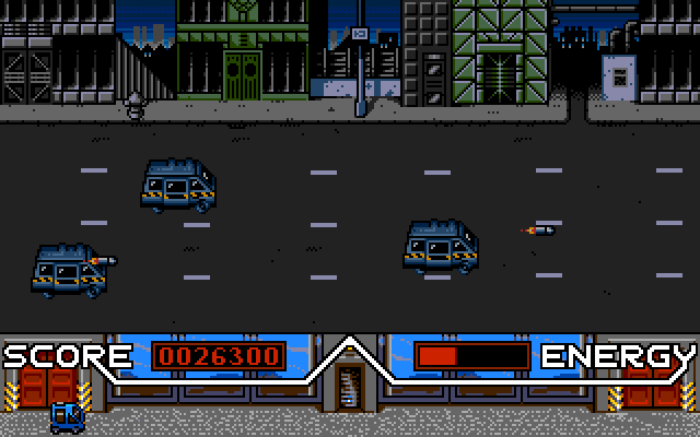 Driving levels are high-speed side-scrolling runs, with the player's vehicle moving at a fixed speed. The player must dodge passing traffic, or blow them apart with weapons. If they survive to the end, they must defeat a mobile boss vehicle to end the level. Cutscenes appear between certain levels that tell the plot of the movie and set up the next scene.
