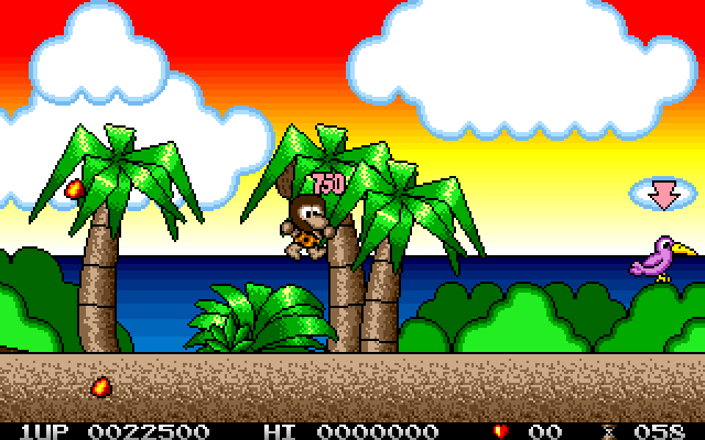 | __long_description | This is the second game Dave parsons wrote for the Amiga. It is a fairly short, sideways-scrolling game in the Wonderboy style. It uses pixel-perfect collision detection routines and runs in 32-colour mode. It was revisited later and made into a much more colourful [AGA version](/amiga/trog-aga) which has 64 colours, much smoother sky colours and screen fades, and a 1-bit parallax background layer. |
