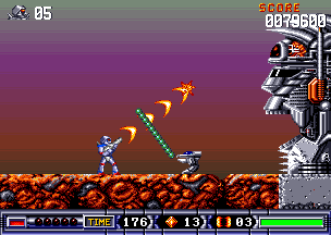 After "The Machine" and his mutants slaughter everyone aboard the United Planets Ship "Avalon 1", save one, Bren McGuire climbs into the new Turrican combat suit and promises revenge over his fallen comrades.