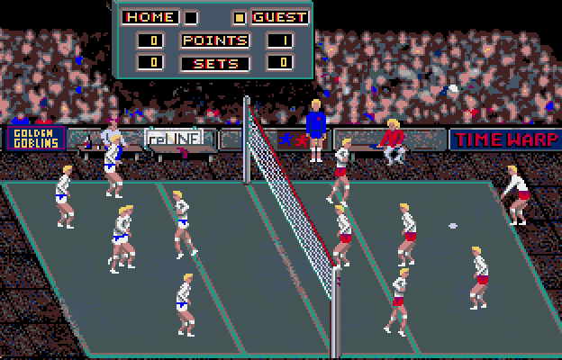 Volleyball Simulator is, probably not entirely surprising, a game about the sport volleyball. The game features full six-athlete teams and the original rule set with one playing mode: a single match, either against the AI or another player. However, there is room for customization with the tactics menu. Here players can set the defense and offense strategy and the position of every athlete.