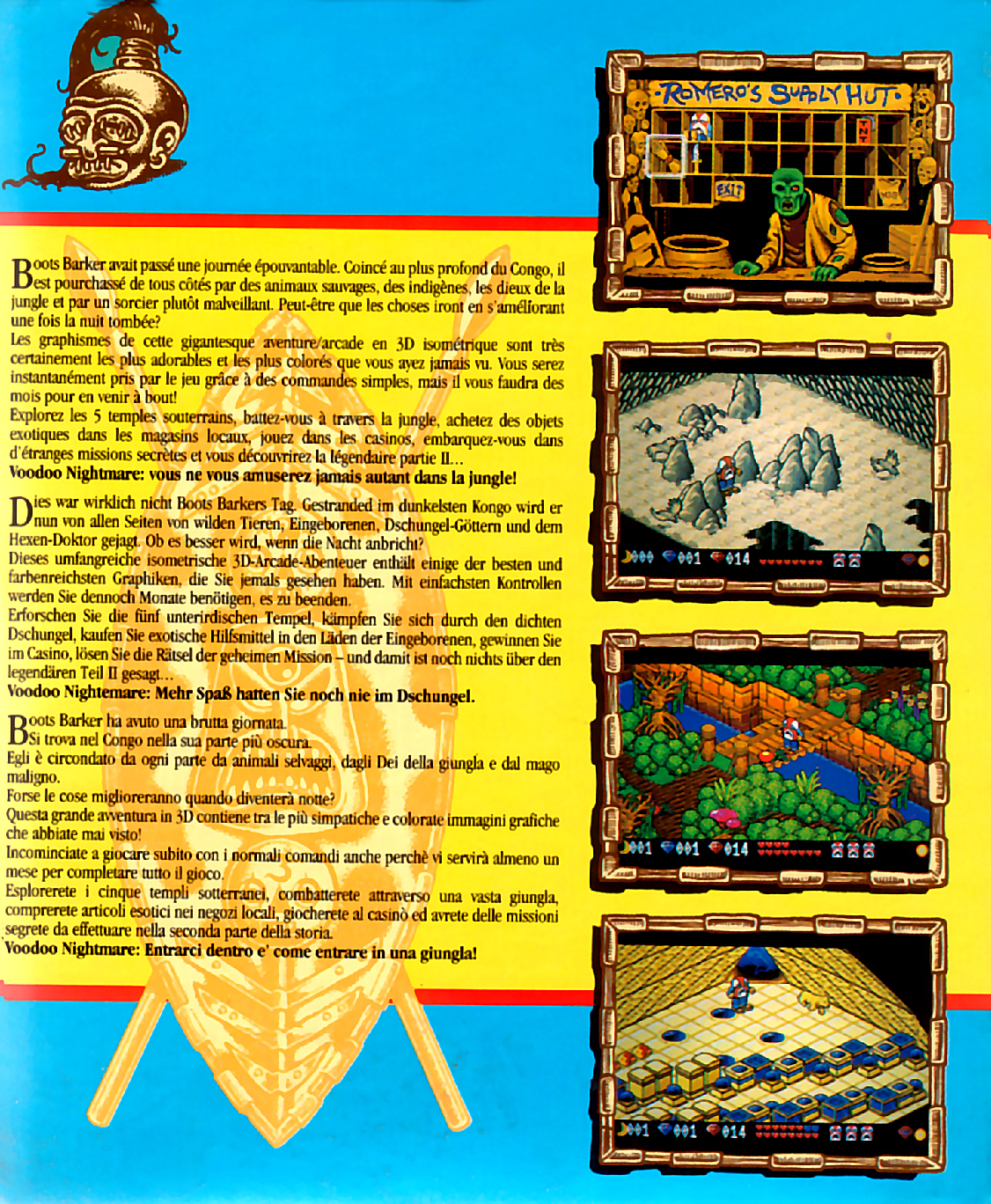 | __long_description | Boots Barker does not have a good day. His wife and his best friend cheated on him and during a balloon trip over Africa, they leave him there to die. And he probably will because a medicine man forced him to wear a voodoo mask which prevents him permanently to leave the jungle. To get rid of the thing, he needs to find this medicine man.