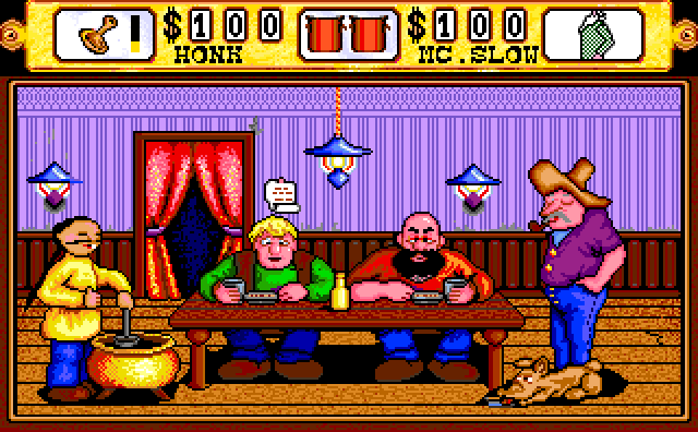 Dancing requires a complicated routine of joystick movements to do certain dance moves while keeping the beat. Lose the beat and the other guys bash the piano player on the head causing him to stop playing. You must buy the piano player another beer to have him resume playing.