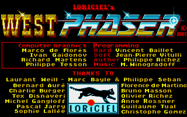 This game came as a pack-in title with Loriciel's light gun controller of the same name. Most light guns opted for a futuristic look and feel, but the West Phaser was inspired more by 19th century Colt revolvers, and aptly enough the bundled game was a Western-themed shooter - with similar mechanics to Operation Wolf, except for the stationary screens.
