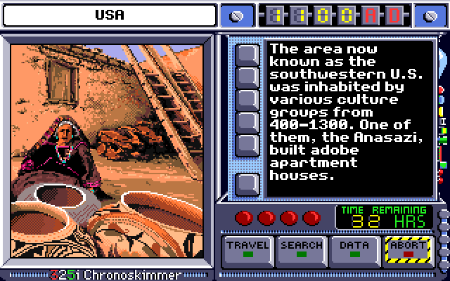 Carmen Sandiego and her gang are loose once again, and it is the players job to capture her! This time round the player not only has to find where she is, but also when she is. Traveling to various locations, they need to assemble clues by questioning witnesses and searching locations to close in and capture Carmen Sandiego.