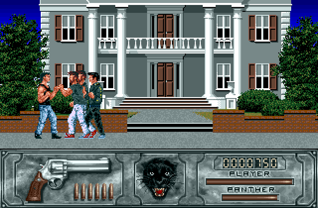 Wild Streets is a side-scrolling arcade game, in which you fight enemies using punches, kicks, your gun and sometimes your panther will help you.