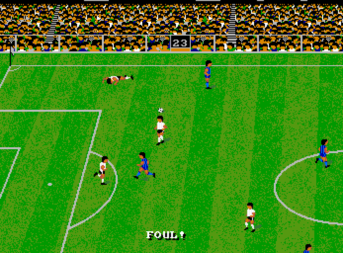 World Cup 90 is a soccer game capitalizing the event of World Cup of 1990 in Italy. All the national teams participating at the event are included; however, due to the lack of a license, the players' names are fictional. The player can create custom teams (name, tactics and color of the jersey) and change the team's roster. Multiplayer features two players mode (1 vs. 1 or 2 vs. CPU), and through additional interface, it is possible to add other two players.
