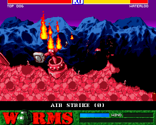 There's a lot of weapons available - the standard ones as bazookas (which is affected by the (random) wind settings and gravity) and grenades. The others include a Fire Punch, dynamite, air strikes, and utilities such as ropes and girders.