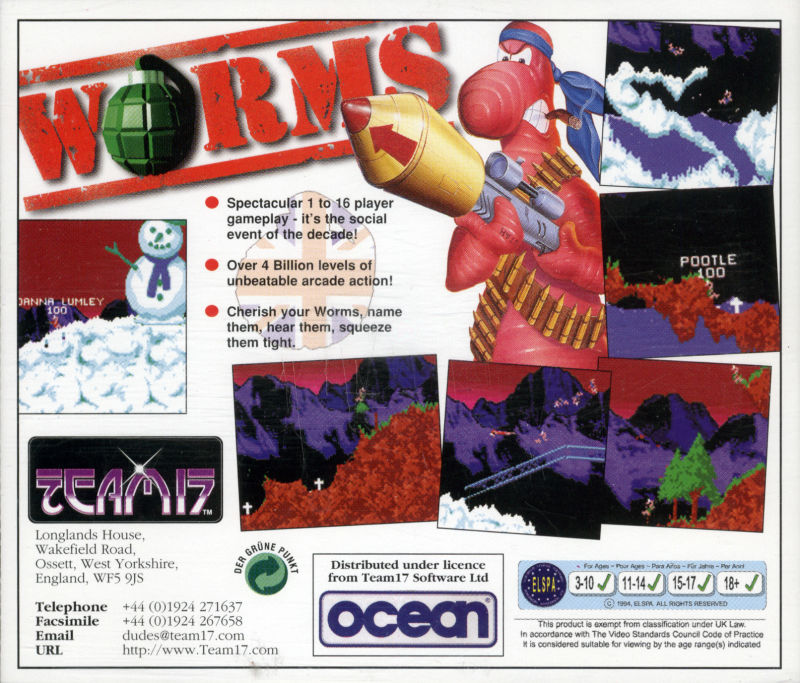 | __long_description | Worms is a turn-based strategy game. It features up to 4 teams of 4 worms, aiming to destroy the others on a generated terrain. Each worm has 100 hit points, and dies when his hit points fall to 0. Upon death, a worm explodes, causing damage to everyone around.